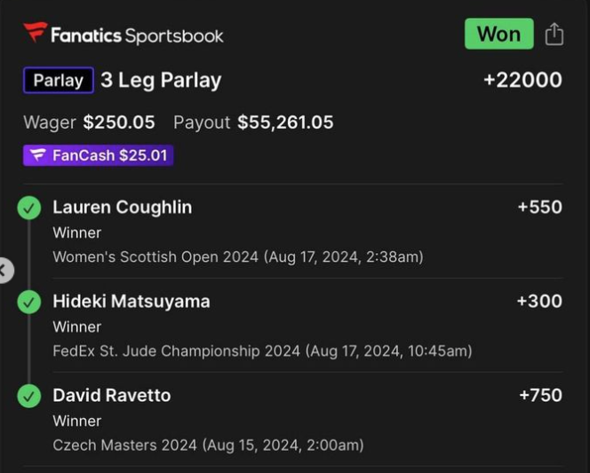 Ούτε λίγο ούτε πολύ, αυτή η τριάδα έφτασε σε απόδοση το 221.00! Βλέπετε, η Lauren και o David ήταν μεγάλα αουτσάιντερ! Όσον αφορά το ποντάρισμα; Ο μάγκας το πίστευε πολύ και το έριξε με 250 δολάρια!