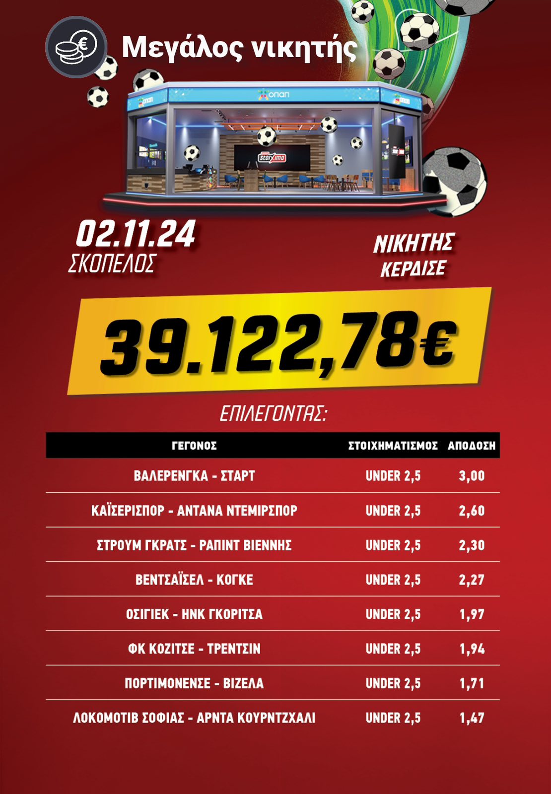 *Ισχύουν όροι & προϋποθέσεις. 21+| ΑΡΜΟΔΙΟΣ ΡΥΘΜΙΣΤΗΣ: ΕΕΕΠ | ΚΙΝΔΥΝΟΣ ΕΘΙΣΜΟΥ & ΑΠΩΛΕΙΑΣ ΠΕΡΙΟΥΣΙΑΣ | ΓΡΑΜΜΗ ΒΟΗΘΕΙΑΣ ΚΕΘΕΑ: 2109237777 | ΠΑΙΞΕ ΥΠΕΥΘΥΝΑ.