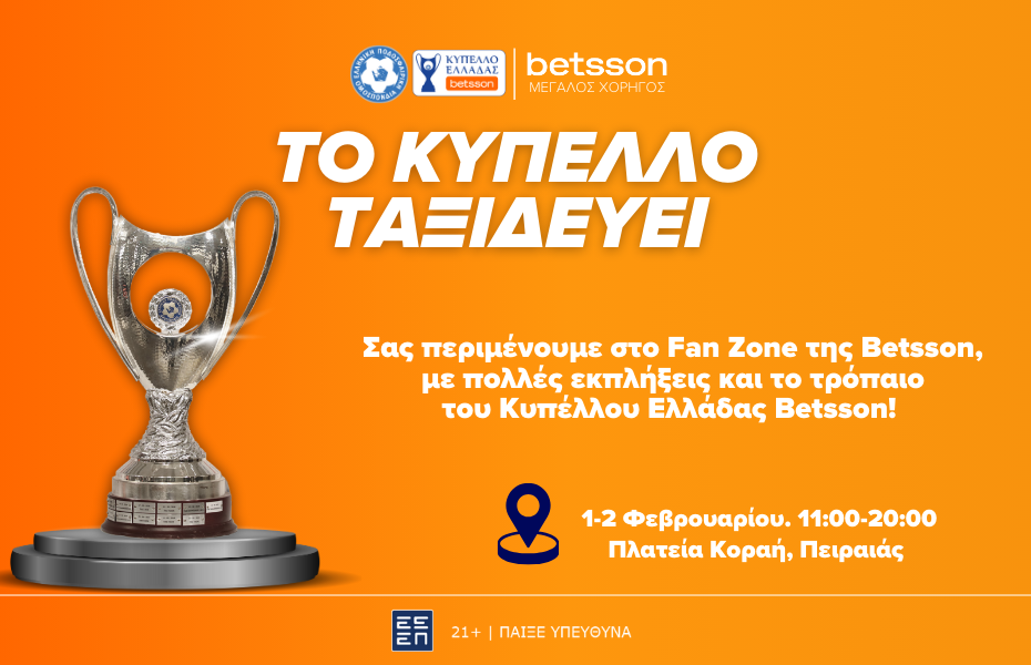 Το Κύπελλο Ελλάδας Betsson θα φιλοξενηθεί στην Πλατεία Κοραή το Σάββατο 1 και την Κυριακή 2 Φεβρουαρίου (11:00 έως 20:00) και το κέντρο του Πειραιά θα γεμίσει με τη μαγεία του ποδοσφαίρου, φέρνοντας το πάθος και τη λάμψη του θεσμού κοντά στους φιλάθλους.