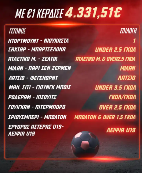 Τρία ασάκια στα «αστέρια», Ντόρτμουντ, Μίλαν και Λάτσιο, ένα combo, την Ατλέτικο, δύο ματς στα γκολ, Σαχτάρ και Μάντσεστερ Σίτι! Λειψία στις «μικρές αστεράτες» και τρία ματσάκια από Championship και League One!