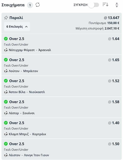 Η αλήθεια είναι πως τα Overάκια του ήταν όλα λογικά! Κανένα δεν προκάλεσε έκπληξη! Δείτε και κρίνετε μόνοι σας: Νότιγχαμ – Άρσεναλ, Λούτον – Μπράιτον, Άστον Βίλα – Νιούκαστλ, Λέστερ – Σουόνσι, Κλαμπ Μπριζ – Κορτράικ και Λέιστον – Λονγκ Ίτον.
