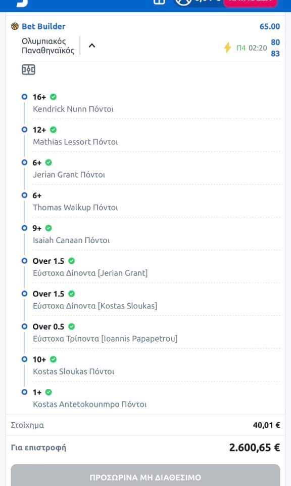 Όλη αυτή η δεκάδα επιλογών, είχε απόδοση 65.00. Ο μάγκας, το πίστεψε πολύ, του έριξε ένα 40άρι και τώρα σχεδιάζει ήδη τις διακοπές του με 2.600 ευρώ κάβα!