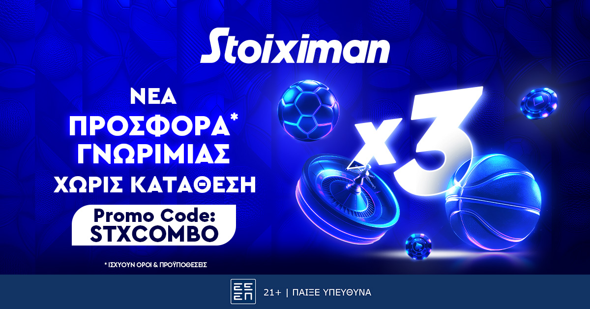 Τριπλή super προσφορά γνωριμίας, χωρίς κατάθεση* από τη Stoiximan!