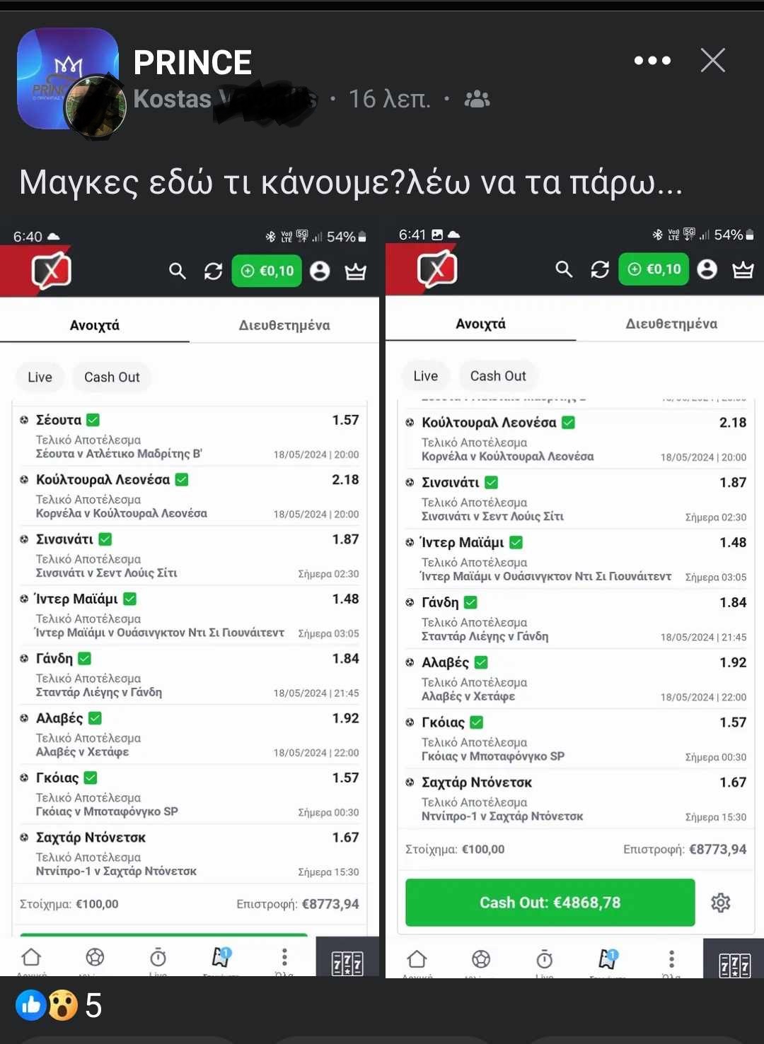 Και κάπου εδώ, αναρωτήθηκε στο γκρουπ μας στο Facebook, τι να κάνει. Να πάρει τα 4.868,78 του cash out ή να κάτσει να περιμένει (να τον λούσει κρύος ιδρώτας και πιθανώς οι σφυγμοί να φτάσουν τους 200) τι θα κάνει η κυρία Σαχτάρ;