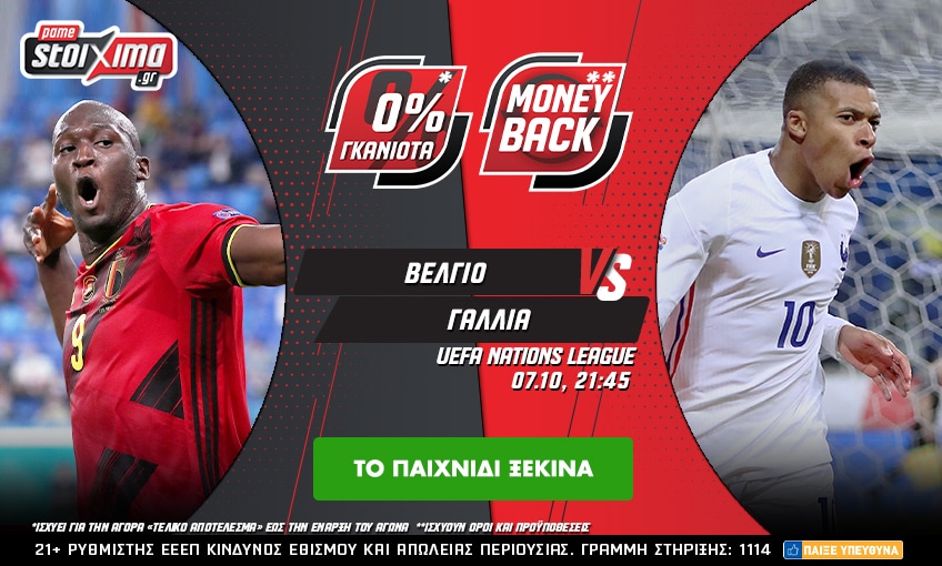 Βέλγιο – Γαλλία με 0% γκανιότα, ενισχυμένες αποδόσεις και MoneyBack!