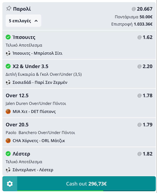 Βιαστική… πεντάδα με 50άρικο σε ΤσουΛου, Αγγλίες και ΝΒΑ